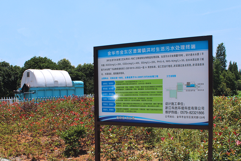 金華市澧浦鎮(zhèn)洪村生活污水處理工藝采用3D-RBC立體結(jié)構(gòu)生物轉(zhuǎn)盤處理設(shè)備,生活污水日處理量100噸,